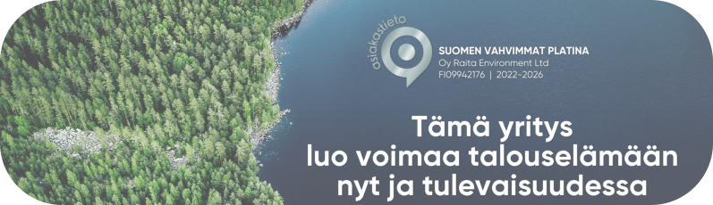 Raita on suomalainen ympäristöteknologiaan erikoistunut yritys.Raita Environmentin historia ulottuu 1950- luvulle. Menetelmien ja tuotteiden kehittäminen asumismukavuuden parantamiseksi ja samalla ympäristövaikutusten minimoimiseksi on ollut tehtävänämme jo 75 vuoden ajan. Pienentämällä hiilijalanjälkeäsi ja säästät myös kustannuksissa. Biokäymälä, jätevesipuhdistamo sekä kompostori ovat sinun ja ympäristösi kannalta parhaita valintoja.