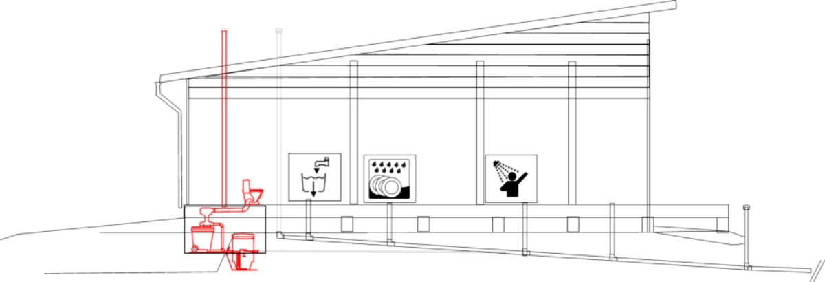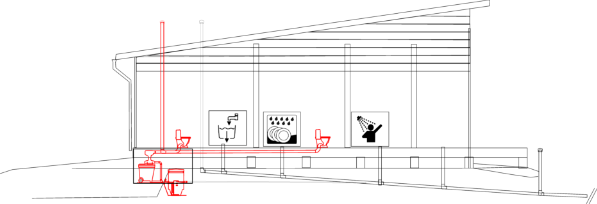 Erottelu tapahtuu ilman sähköä tai liikkuvia osia. Kompostointi suoritetaan vaunussa. Vaunu on helppo tyhjentää tai vaihtaa tyhjään vaunuun.Neste käsitellään NP ravinteidenpoisto yksikössä, jonka jälkeen sen johdetaan kiinteistön jätevesijärjestelmään. NP yksikkö käsittelee hyvin ravinnerikkaan, mutta suhteellisen pienen vesimäärän tehokkaasti. Typpi hapetetaan ja jäteveteen lisätään RAKE kemikaalia (neste, sisältää rautasuolaa). Jätevesijärjestelmässä hapetettu typpi (nitraatti) pelkistyy ja RAKE kemikaali saostaa fosforin jäteveden saostuskaivossa. Samaa saostuskaivoa käytetään kiinteistön muiden jätevesien, eli harmaiden (pesu - ja huuhtelu) vesien esikäsittelyyn. Laitteistojen huolto on helppo tehdä itse.Myös jätevesien käsittelyjärjestelmän rasvaja liete voidaan kompostoida kiinteistöllä.